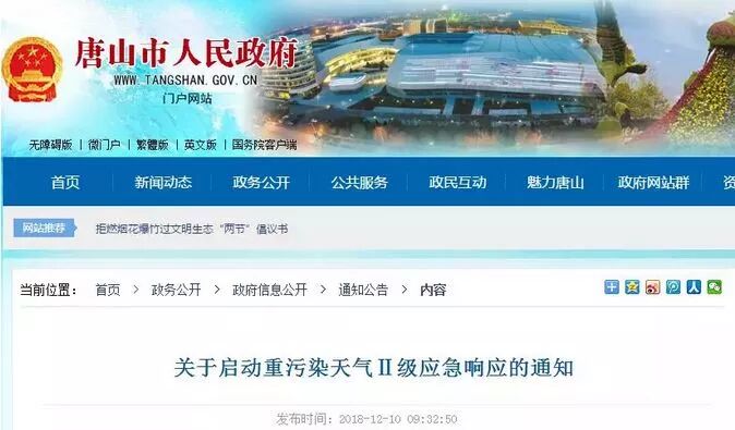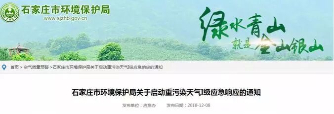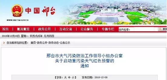 12月10日,河北省大气办发出通知,要求区域一、区域二城市于12月12日18时发布重污染天气橙色预警,启动Ⅱ级应急响应。